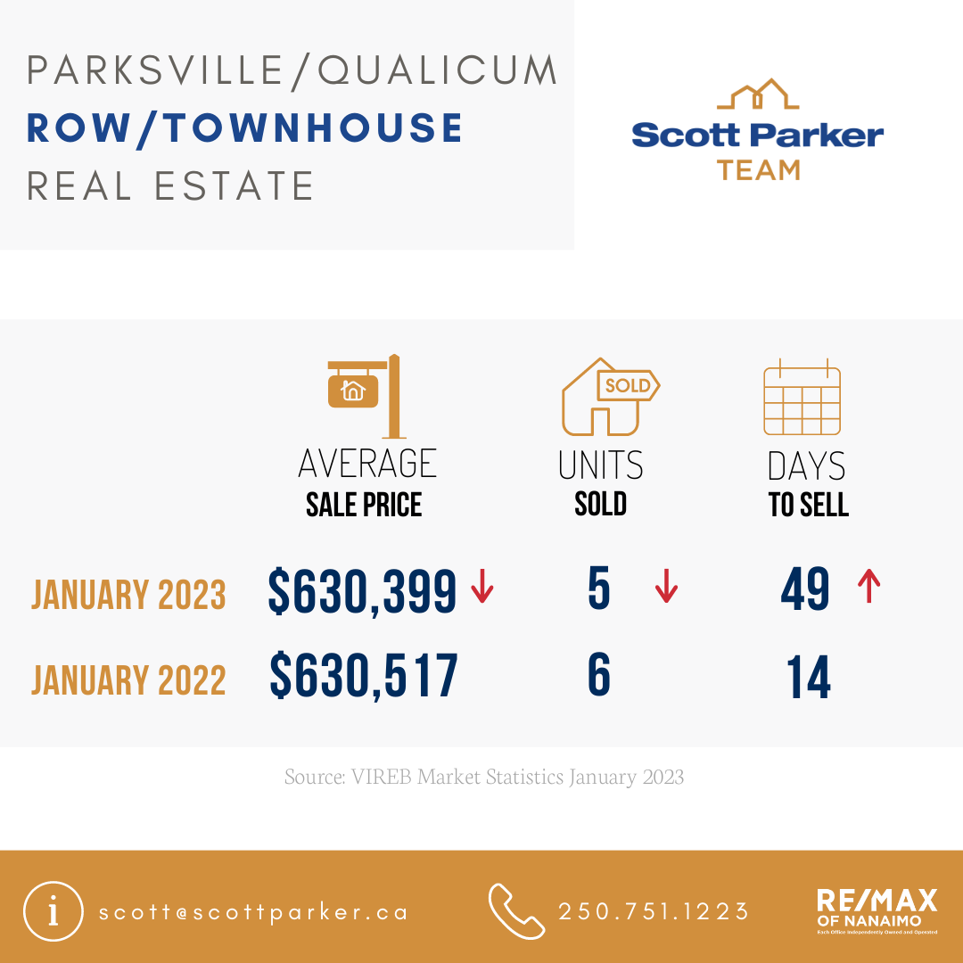 Inventory continues to post gains, but active listings in some categories did drop from December 2022. Year-over-year listings of single-family homes rose to 861 from 257 one year ago but dipped by four per cent from the previous month. VIREB’s inventory of condo apartments was 239 in January, up from 108 listings one year ago and down by four per cent from December. There were 239 row/townhouses for sale last month compared to 66 one year ago and 229 in December.