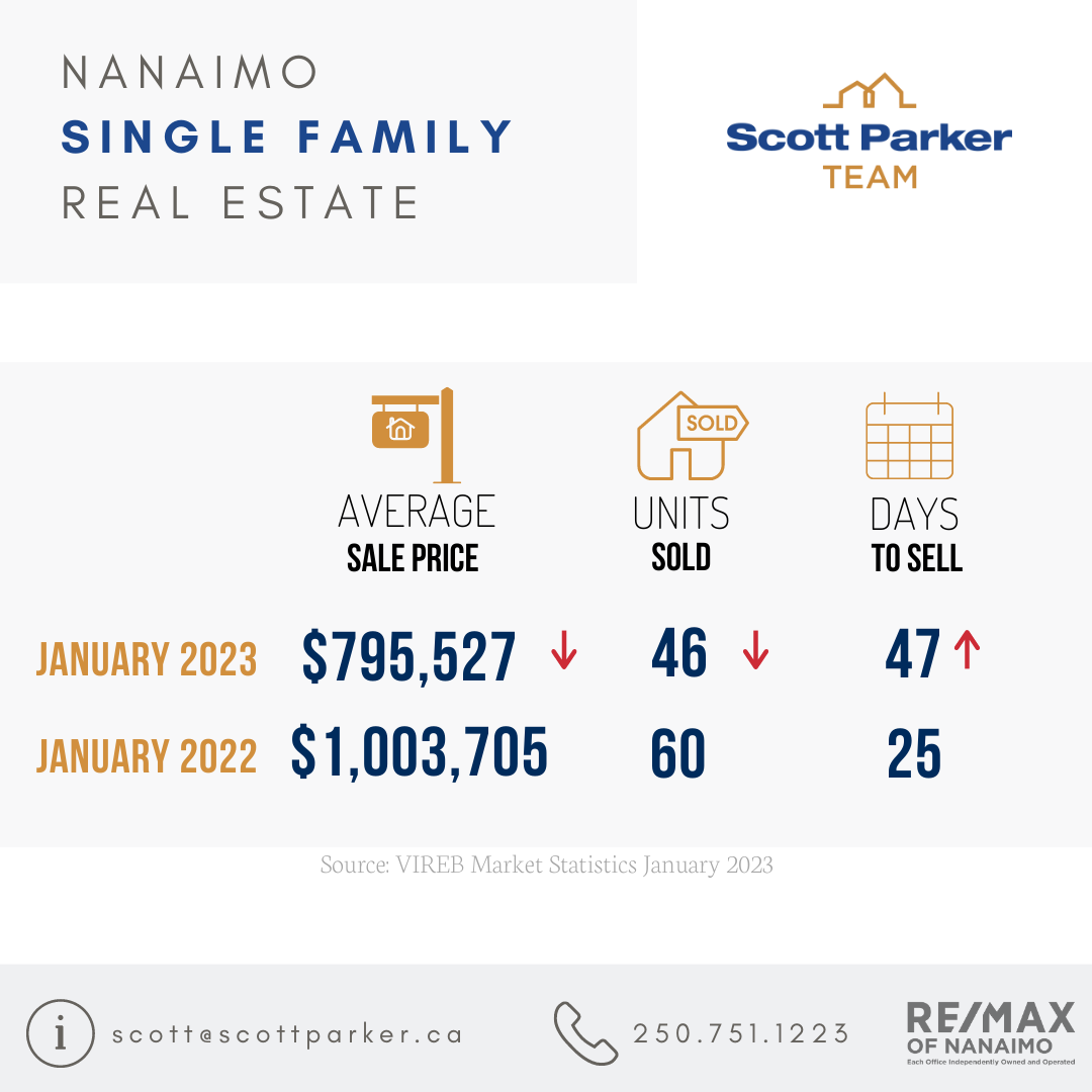 - Nanaimo’s year-over-year benchmark dropped by seven per cent to $755,300